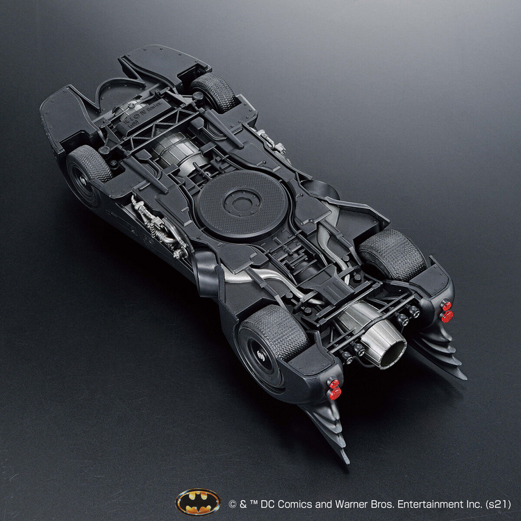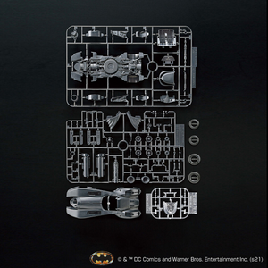 The Batmobile as seen in 1989's "Batman" is now available in model-kit form from Bandai in special specifications! This 1/35-scale kit offers accurate reproduction with precision carved parts; the exterior is now made of a matte material to express the profound texture of the vehicle, and the roof part can slide open and closed. The cockpit interior and mechanical details are precisely reproduced, and the turbine engine is also molded in incredible detail. The machine guns and rocket anchors can be deployed and stored by parts replacement.
