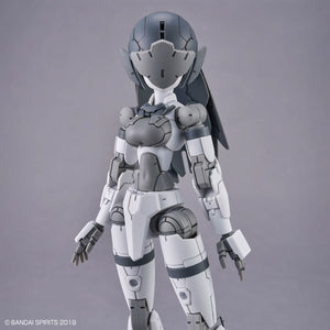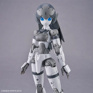 The Acerby (Type-C) from the "30Minutes Missions" (30MM) series from Bandai is now available! This kit includes the main body, armor parts, and weapons too. Two types of armor are included that can be attached to the shoulders and waist; the silhouette changes by unfolding the head binder from side to side. The visor on the head can be adjusted up and down by replacing it; the blade part of the included blade submachine gun is separated. Chest parts are included that allow you to customize the armor that cones with Spinatia (sold separately), too!