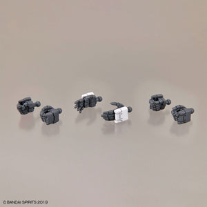 These "30MM" (30Minutes Missions) option parts expands the range of customization you can achieve! A wide variety of parts are included, such as open hands, grip hands, pointing hands, and several different types of weapon-holding hands. The hands are in two sizes: 1.1 times the size of the S size, and 1.2 times the size of the M size, to expand the range of expression. Three types of glove parts are also included, in gray and white. A runner set with multi-joints is also included, with 3mm joints, C-type joints, and detail cover parts.