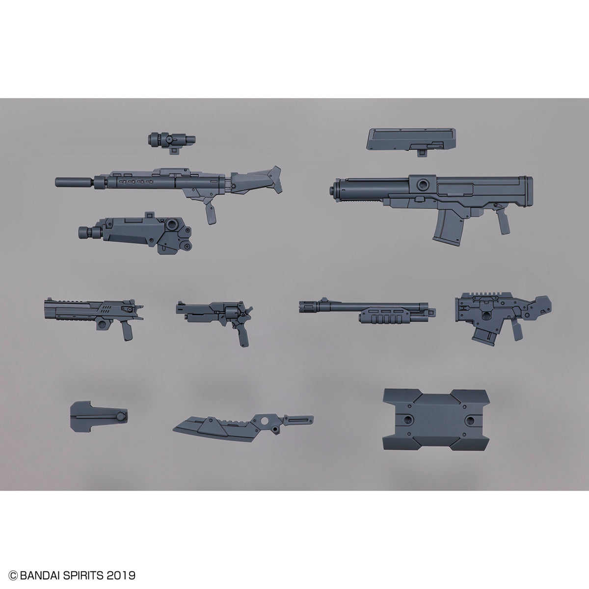 Arm your "30MM" (30Minutes Missions) kits with this wide range of abundantly versatile military weapons! The rifle can be customized by dividing its parts, and the Desert Eagle and revolver can be stored in the holster and attached to the waist of a 30MS figure, too.