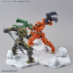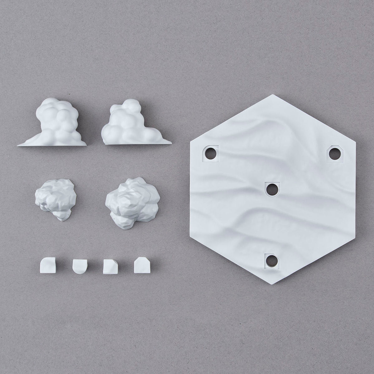 Part of the 30MM (30 Minutes Missions) lineup, this new thematic base allows you to display your mech like a simple diorama. This version is made to resemble a snowfield, and includes several attachable parts that look like powdered snow billowing up from the footsteps of your mech.