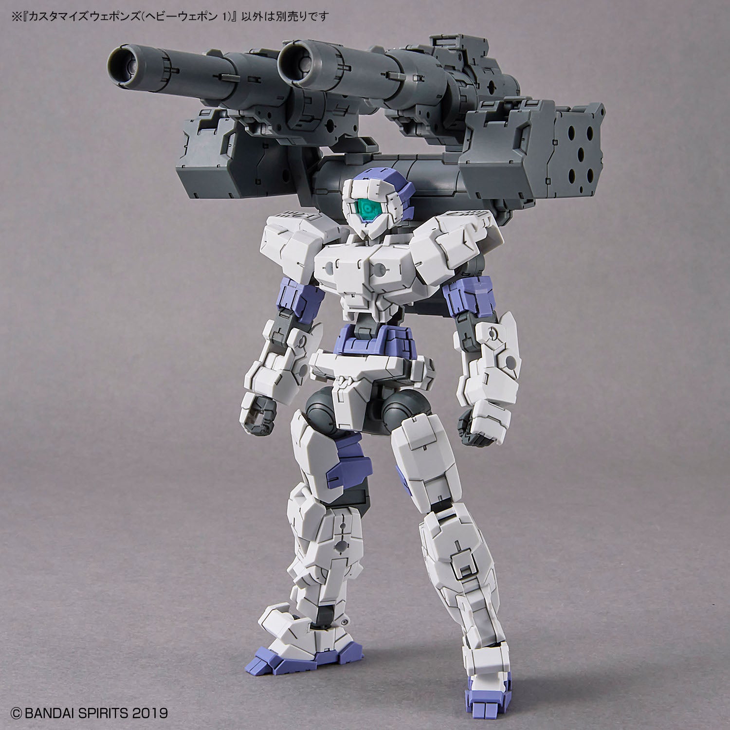 Here's a set of weapons for your "30Minutes Missions" model kits from Bandai! You can enjoy a wide range of customization with the hard points on each item, as well as the abundant supply of joints. The cannon and missile pods can be connected to the backpack; missile pods can be vertically connected using the included joints, and they can also be vertically and horizontally connected by combining separately sold items. The large sword can be divided into a hand blade and a short axe. The large shield can store the 30MM 1/144 eEXM GIG-R01 Provedel's armaments, too.