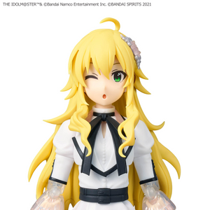Miki Hoshii from "The IdolM@ster" joins the "30MS (30 Minutes Sisters)" action-figure model-kit series from Bandai! This all-in-one set allows you to build a complete, incredibly cute character in the 20th anniversary costume "You And Ai!"! Three types of tampo-printed facial expressions are included; the color coding inside the mouth is reproduced by parts division. You can use parts replacement to display her without her hair accessory. The costume uses clear parts for details such as her hair accessory and collar, and you can reproduce the colorful appearance and precise details just by assembling the kit. Her skirt is made of a sheet with a pattern printed on it. The skin parts have a matte finish for a soft-looking, light-reflecting effect. Different hands are provided, too, including ones that can hold a microphone.