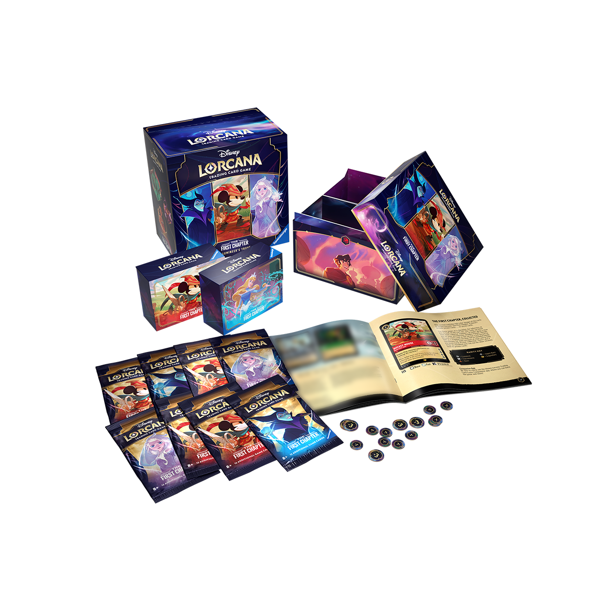 - 1 Player’s Guide: A comprehensive, full-color guide that offers insights into the world of Lorcana, deck-building tips, game strategies, and a visual encyclopedia of all cards in The First Chapter.