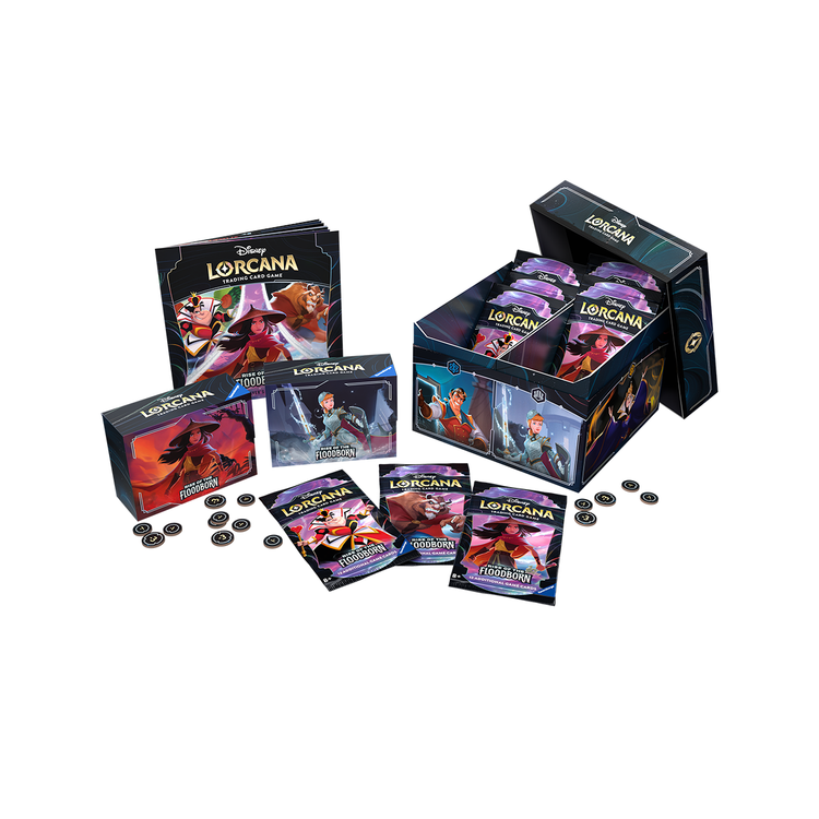 - 1 Player’s Guide: A comprehensive, full-color guide that offers insights into the world of Lorcana, deck-building tips, game strategies, and a visual encyclopedia of all cards in Rise of the Floodborn.
