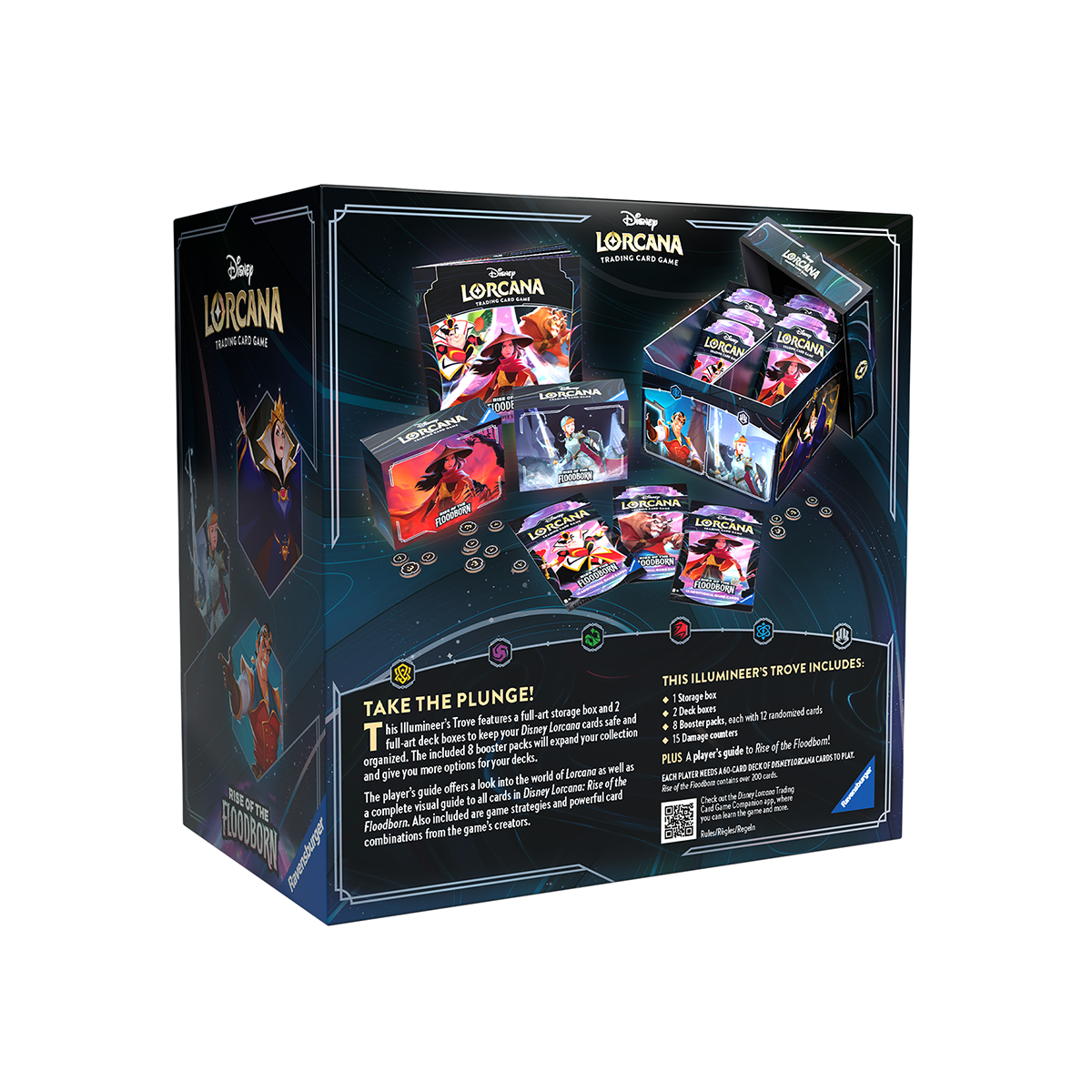 Delve deeper into the enchanting world of Lorcana with the Rise of the Floodborn Illumineer’s Trove. This deluxe set is designed for both collectors and competitive players, offering a treasure trove of items to enhance your Disney Lorcana experience.