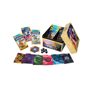 - 1 Full-Art Storage Box: Durable and adorned with stunning original artwork, this box provides a secure and stylish solution for storing your Disney Lorcana cards.