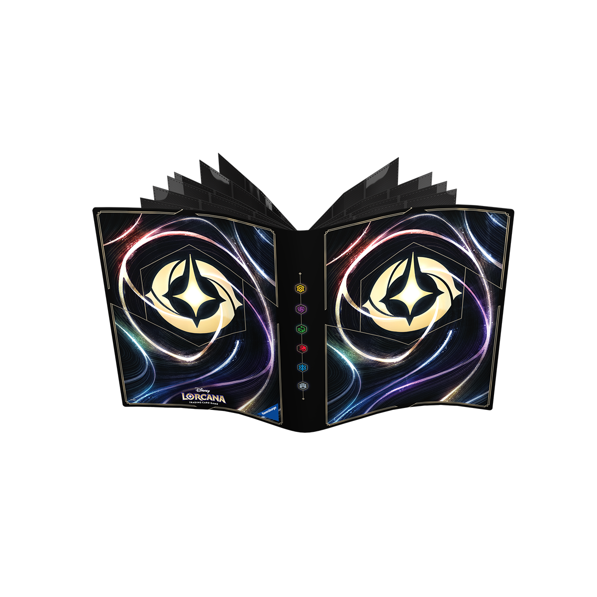 The Disney Lorcana TCG: Shimmering Skies Portfolio is a premium accessory designed for collectors and players to organize and protect their card collections. This portfolio is part of the fifth set in the Disney Lorcana Trading Card Game series, titled Shimmering Skies, and is produced by Ravensburger.