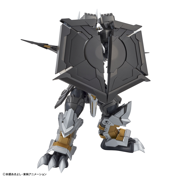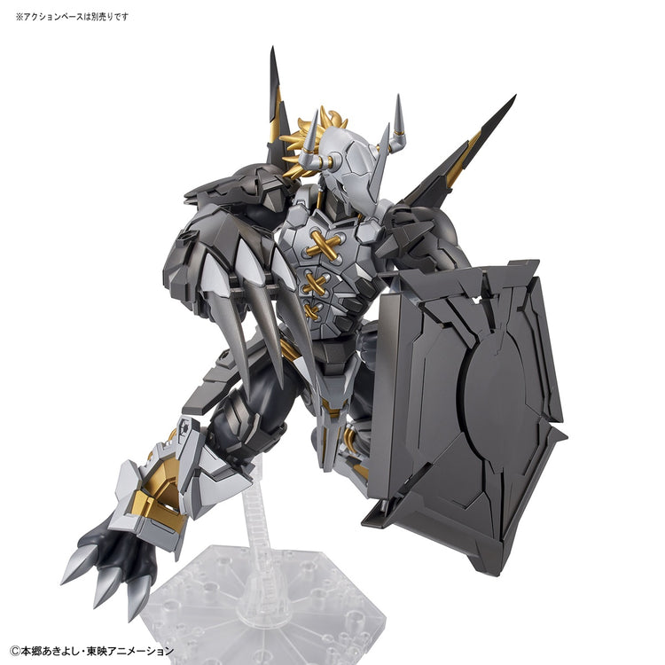 The mighty BlackWarGreymon from "Digimon Adventure 02" joins the Figure-rise Standard Amplified lineup from Bandai! It's molded in its signature black and silver colors, with massive wings that can connect to its back, or changed to a shield and mounted to its arms. Effect parts are also included, as are foil stickers for the markings.