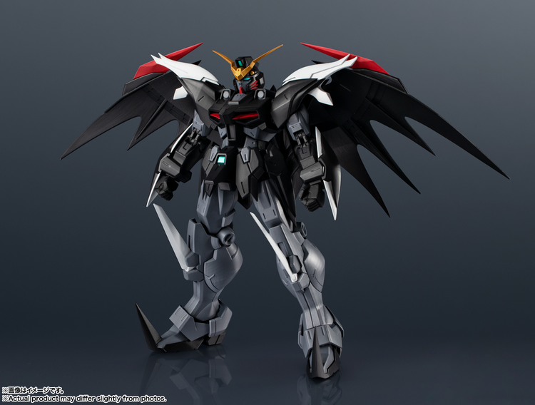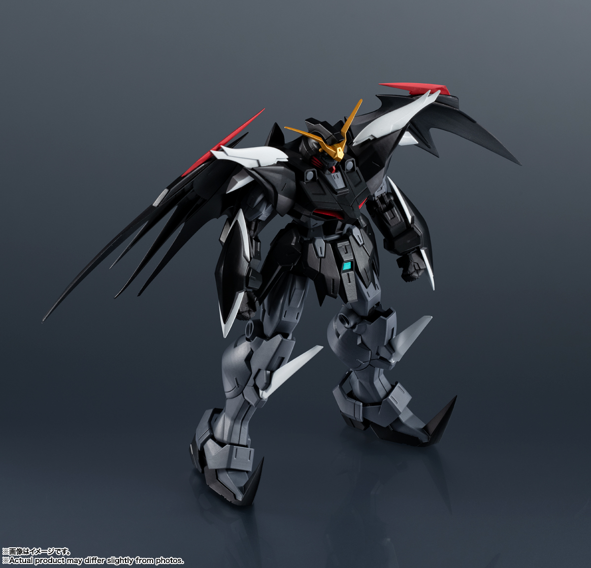 The majestic Gundam Deathscythe Hell from "Mobile Suit Gundam Wing: Endless Waltz" is joining the "Gundam Universe" action-figure series from Bandai! Its impressive Beam Scissors weapon is included, as is its distinctive cloak.