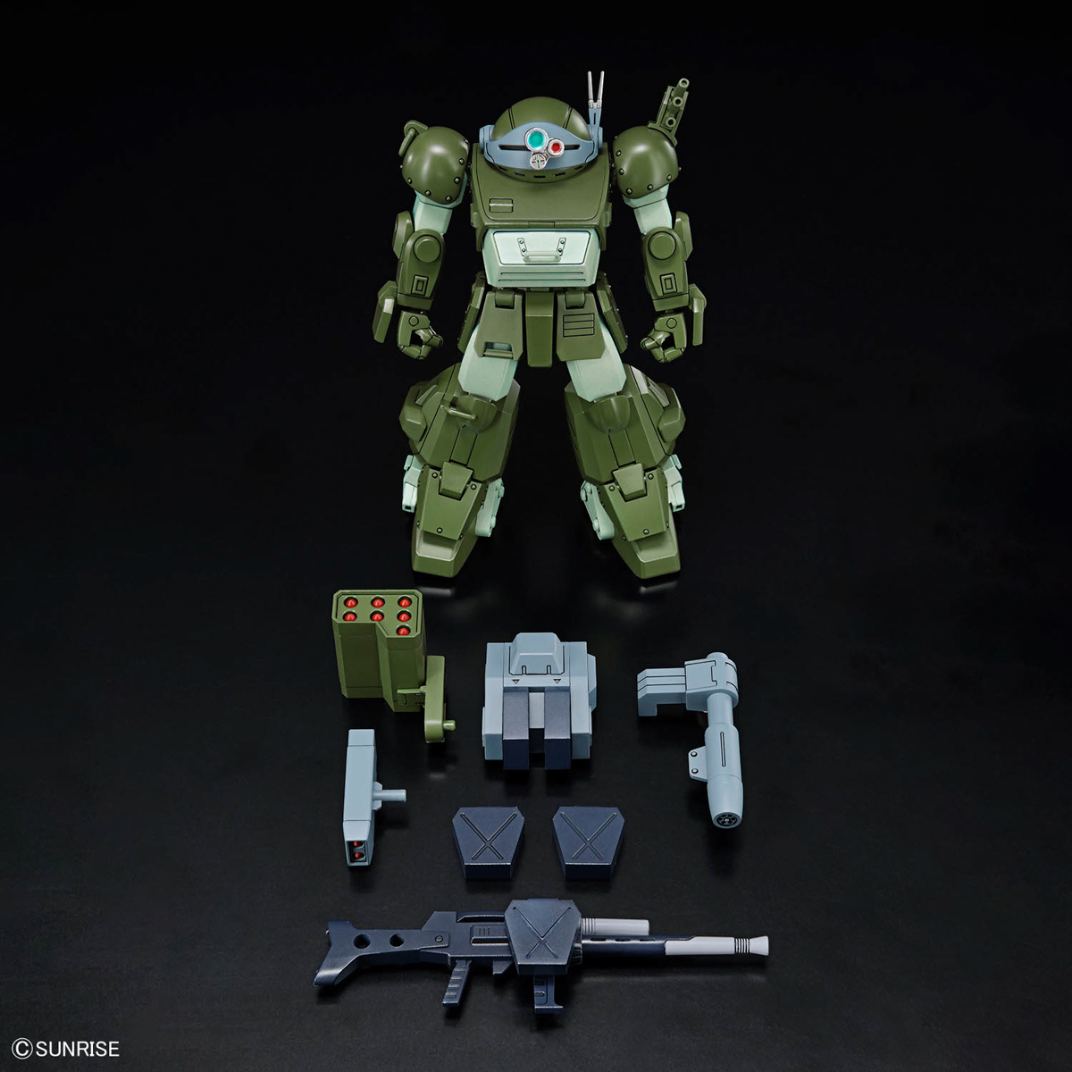 The improved version of the Scopedog with an enhanced roller dash mechanism, as seen in the OVA "Armored Trooper Votoms: The Last Red Shoulder," is now available in Bandai's "HG (High Grade)" model-kit series! The deployment and storage of the leg jet roller dash unit unique to the Turbo Custom is reproduced; when the leg cover is opened, the jet roller dash unit moves forward in tandem. New shoulder parts that expand the range of motion of the shoulder are included, so now it's possible to raise the arms without interference. The movable legs can reproduce the landing mechanism, too!