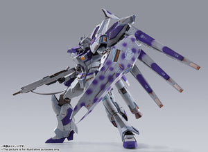 Say 'HELLO' to the Metal Build Hi-NU Gundam - the absolute pinnacle of both strength and flexibility! The signature silhouette and coloring has been carefully recreated, with an incredible amount of focus being put into making sure the design has been faithfully captured. The funnels that are characteristic of this MS are equipped on the back and can even be removed to expose the thrusters. Even the armor can be removed to expose the inner workings of the mechanics. The backpack base can be rotated to make it spread out like a wing's feather.