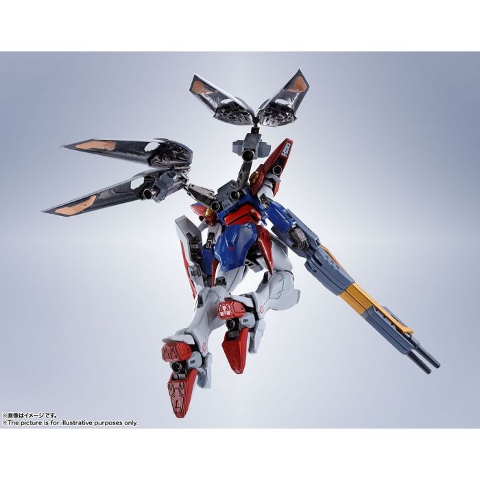 The Wing Gundam Zero from "Gundam Wing" gets a spectacular new Metal Robot Damashii figure from Bandai! Sharp modeling, precise painting and heavy die-cast parts all combine for a high-class finish. It's also equipped with opening and closing gimmicks, and it can also transform into its Neo-Bird form! The machine cannons built into both shoulders can be rotated out and in; the buster rifle can be switched between a double-mounted and split form. The Neo-Bird form can also be reproduced without parts replacement, and the verniers in the soles of the Wing Gundam Zero's feet are perfectly mimicked. Detailed thruster units and verniers are mounted on the backpack.