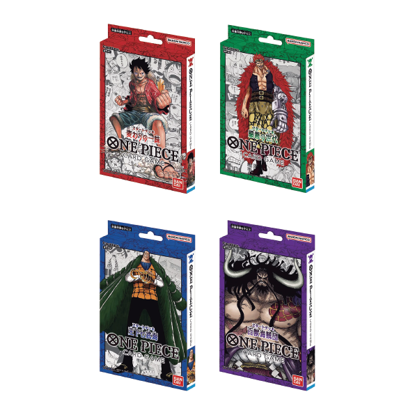 One Piece Trading Card Game will launch with four starter decks themed after four groups from the series including the Straw Hats, the Worst Generation, Animal Kingdom Pirates, and the Seven Warlords of the Sea.