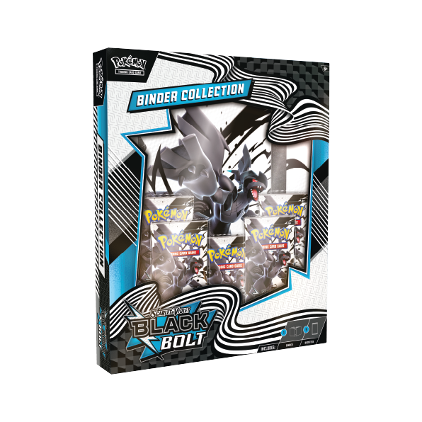 Includes five Scarlet & Violet—Black Bolt or Scarlet & Violet—White Flare booster packs, respectively; and one nine-pocket album featuring Zekrom or Reshiram, respectively, to organize and store Pokémon TCG cards.