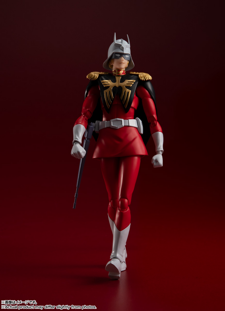 Char Aznable from "Mobile Suit Gundam," also known as the Red Comet, is finally available in Bandai's "S.H.Figuarts" series! The movable gimmicks have been carefully crafted to recreate Char's famous scenes while pursuing beautiful proportions! A wide range of poses can be recreated with the abundant interchangeable parts. Flexible shoulders and a pull-out mechanism in the hips allows for natural sitting poses, and dynamic action poses are possible with the included beam gun! A Newtype effect part is included too, and a wide range of interchangeable facial expressions and hands are included too.