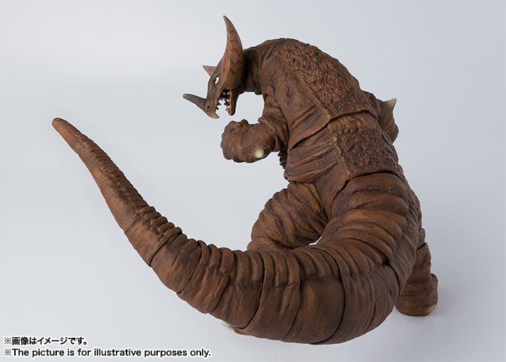 Gomora, one of the most easily recognizable of the "Ultraman" monsters, returns to Bandai's "S.H.Figuarts" action-figure liineup! He's fully posable for maximum battle action; he comes with "torn-off" tail and replacement horn parts. His tail features 13 sections for great posability!