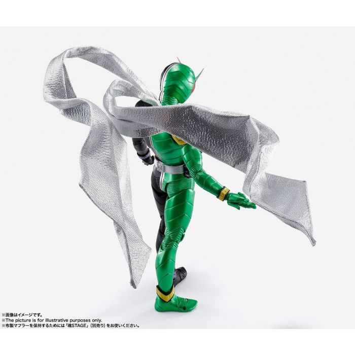 Kamen Rider W Cyclone Joker returns to the S.H.Figuarts (Shinkocchou) lineup with new parts to commemorate the upcoming "Fuuto PI" animated series! This incredibly detailed, fully posable figure comes with a fabric muffler with a wire in the hem to reproduce dramatic poses as seen in the show, and the base also spotlights the series. A plastic muffler is included as well.