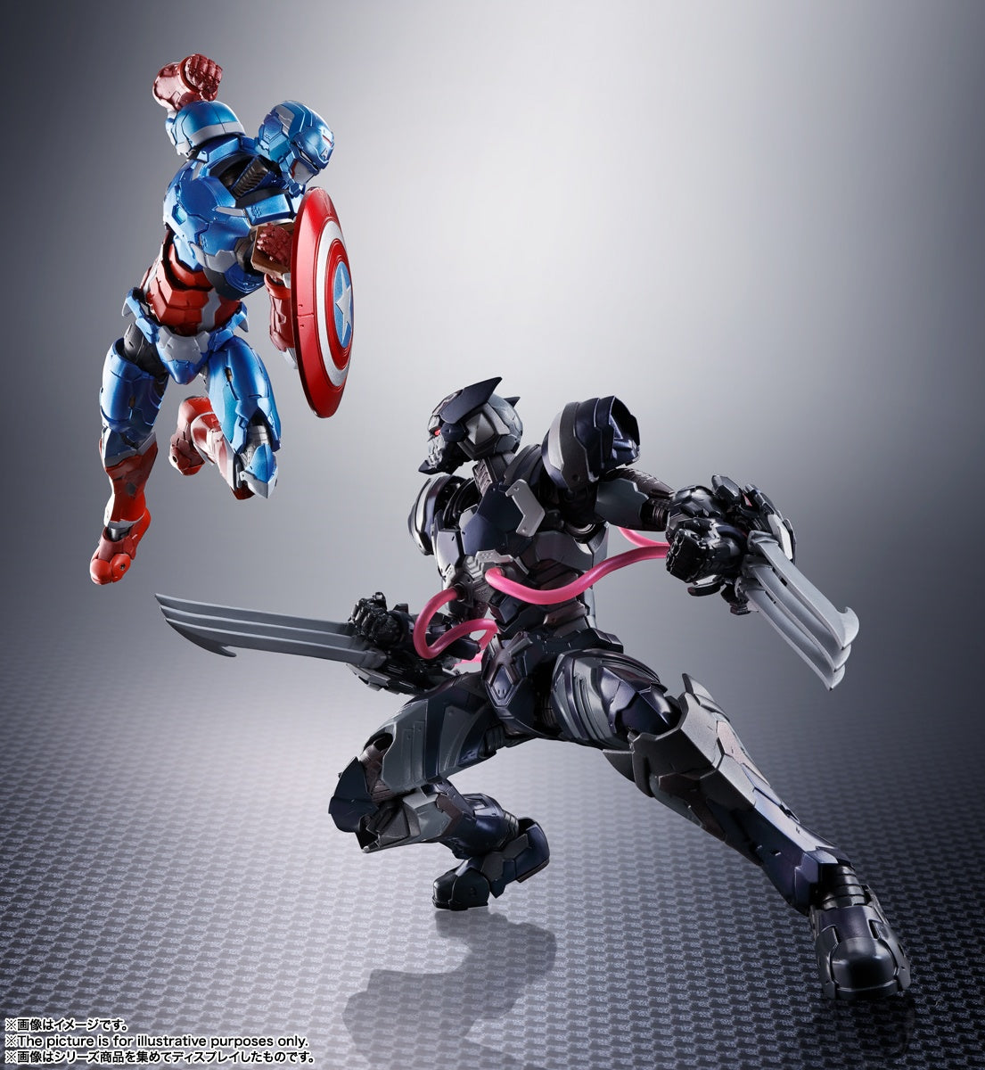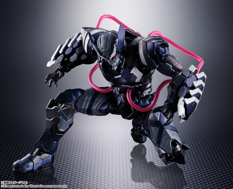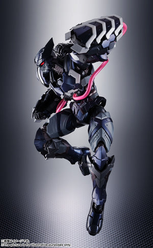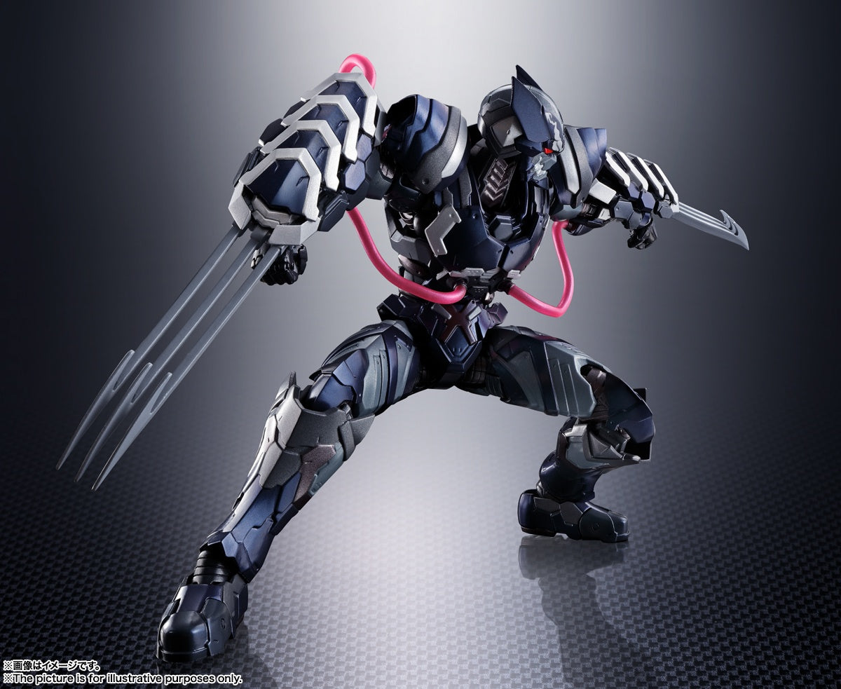 Venom fused with Wolverine makes for a terrifying villain -- and now Bandai brings us that lethal combination in their latest "Tech on Avengers" action figure! The metallic black color of his body evokes the symbiote's overwhelming power, and the characteristic tube parts are made with a poisonous pink clear material; Wolverine's head features a new tampo-printed pattern to reflect his recent hijacking by Venom! The armored Wolverine's characteristic claws have become even more massive and powerful, too. Can any of Marvel's mightiest heroes stop this unbeatable combination?