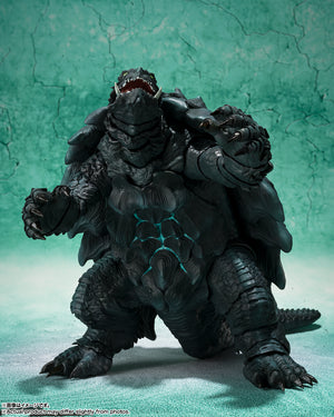 Good news -- Gamera is back! The legendary space turtle returns to movie theaters with the upcoming film "GAMERA -Rebirth-", and Bandai brings us a brand-new action figure of Gamera himself in their "S.H.Figuarts" lineup! This figure has been produced under the thorough supervision of director Hiroyuki Seshita and modeling directory Mitsunori Katayama. Gamera's skeleton is seen in the film, and this figure's joints are arranged at positions calculated backward from that image. A set of part to recreate Gamera's in-flight form are included too, and a newly molded flight-form base is included.