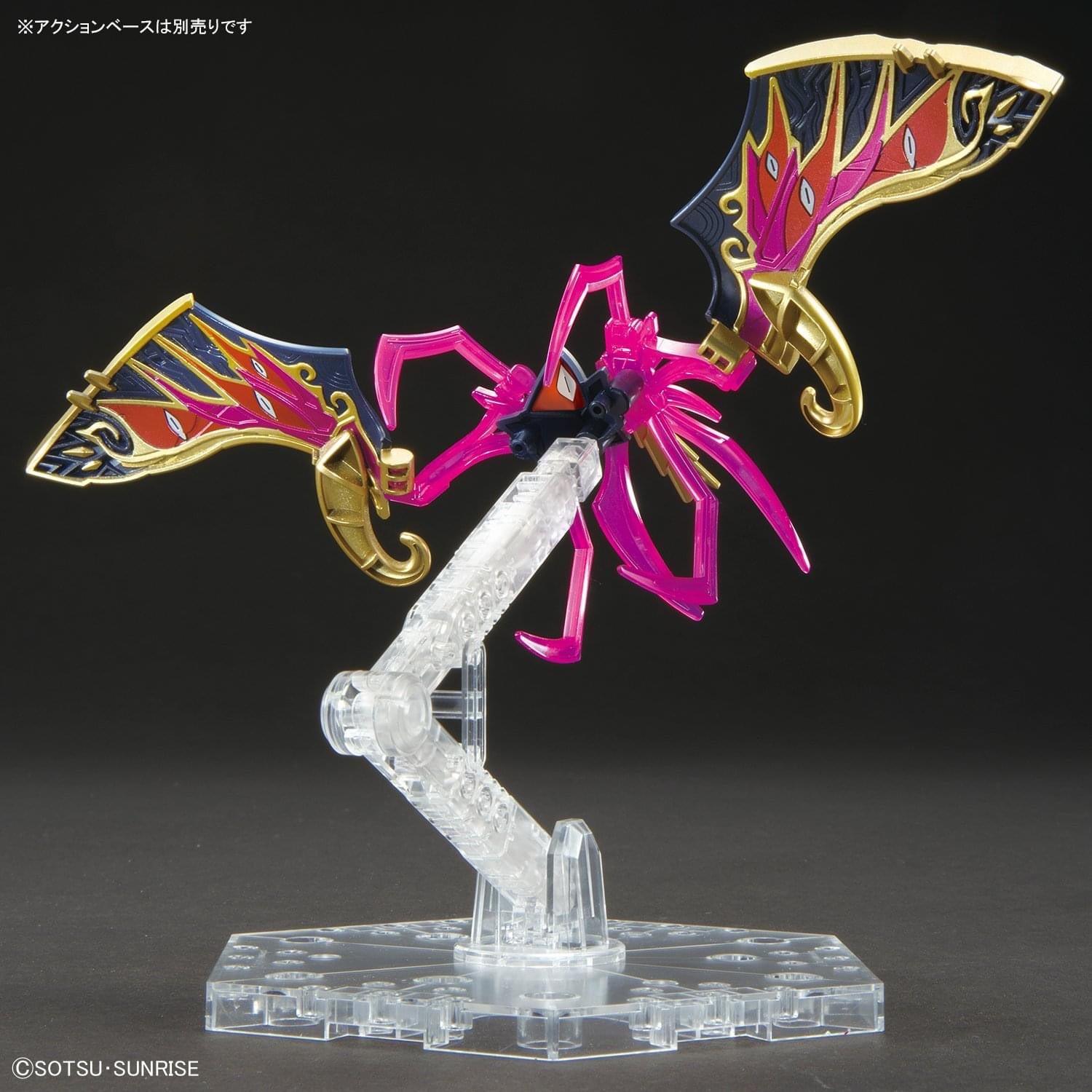 The newest "SD Gundam" lineup has started: "SD Gundam World Heroes The Legend of Dragon Knight"! Warlock Aegis Gundam is a new-generation demon king combining the characteristic silhouette of Satan Gundam with the design elements of the SD Gundam World Series. He wields a wand that inherits the design of Satan Gundam too; his head and cloak are equipped with a deployment gimmick. The detailed design inside his cloak is carefully expressed, too! The support mechanical form can be assembled by combining his cloak with the backpack and antenna.