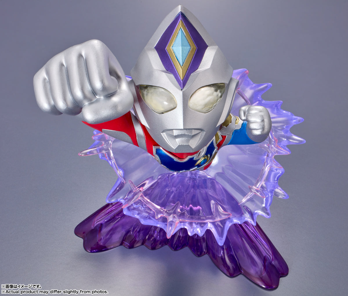 Ultraman joins the "Tamashii Nations Box" blind-box toy lineup from Bandai! These colorful figures are based on "SD Ultraman," which took the world by storm from 1980 to 1990, and are based on newly drawn illustrations supervised by Koji Yokoi, the creator of "SD Ultraman"! The clear effects part of each figure is made with multiple parts for a sense of depth, creating a powerful scene even in their compact size! There are eight different figures, plus one secret, to collect and trade, and they're randomly packed in boxes of eight; each one comes with a tasty onion chip, too! Order yours today!